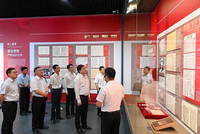 展覽透過(guò)一個(gè)個(gè)生動(dòng)的案例,圍繞“擎旗抗戰(zhàn) 嚴(yán)明政治紀(jì)律”“強(qiáng)化黨性 嚴(yán)明組織紀(jì)律”“激濁揚(yáng)清 嚴(yán)明廉潔紀(jì)律”“心系人民 嚴(yán)明群眾紀(jì)律”“建章立制 嚴(yán)明工作紀(jì)律”“立德立言 嚴(yán)明生活紀(jì)律”“所向披靡 奪取抗戰(zhàn)勝利”等七個(gè)篇章,生動(dòng)展現(xiàn)了新四軍堅(jiān)定崇高的信仰、守紀(jì)如鐵的作風(fēng)、嚴(yán)于律己的風(fēng)范、懲治腐敗的決心、親民愛民的情懷和艱苦奮斗的精神。集團(tuán)領(lǐng)導(dǎo)班子認(rèn)真聽取講解介紹,用心學(xué)習(xí)體悟,表示將嚴(yán)格對(duì)照“六項(xiàng)紀(jì)律”,在學(xué)紀(jì)知紀(jì)明紀(jì)守紀(jì)上下功夫,在以學(xué)促干上持續(xù)用勁,把深化黨紀(jì)學(xué)習(xí)教育同貫徹落實(shí)省市委全會(huì)部署要求、抓好當(dāng)前各項(xiàng)工作結(jié)合起來(lái),以實(shí)干實(shí)績(jī)實(shí)效為鹽城高質(zhì)量發(fā)展大局多作貢獻(xiàn)。