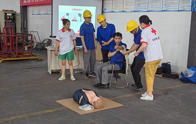 演練前,國(guó)投新材料公司“安全生產(chǎn)月”活動(dòng)領(lǐng)導(dǎo)小組召開(kāi)專題會(huì)議部署演練事宜,要求責(zé)任部門認(rèn)真落實(shí)任務(wù),精心設(shè)計(jì)演練方案,細(xì)化腳本、有序組織、確保質(zhì)量。演練邀請(qǐng)了市紅十字會(huì)講師到場(chǎng)指導(dǎo),圍繞工業(yè)生產(chǎn)中最容易發(fā)生的“觸電”和“機(jī)械傷害”事故展開(kāi),分別進(jìn)行了應(yīng)急救護(hù)知識(shí)培訓(xùn)、事故現(xiàn)場(chǎng)處置和救護(hù)技能實(shí)操練習(xí)?,F(xiàn)場(chǎng)人員密切配合,演練步驟環(huán)環(huán)相扣,達(dá)到了預(yù)期效果。
