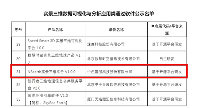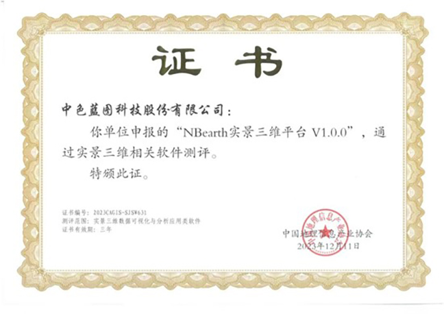 日前,中國地理信息產(chǎn)業(yè)協(xié)會發(fā)布了實景三維相關(guān)軟件測評結(jié)果,由中色藍圖公司自主研發(fā)的“NBearth實景三維平臺”順利通過實景三維相關(guān)軟件測評。