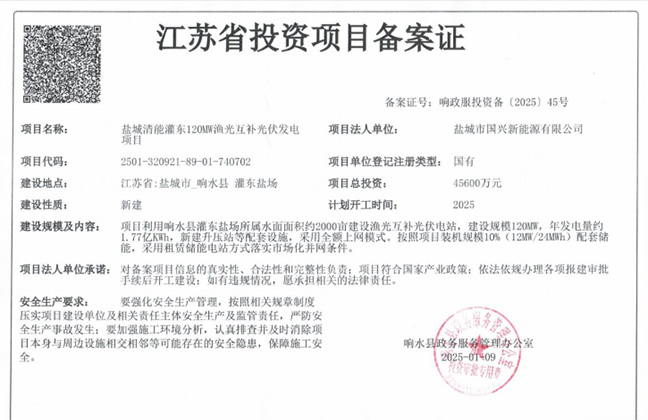 國能公司持續(xù)優(yōu)化市場(chǎng)布局,聚焦業(yè)務(wù)拓展,積極整合資源,緊盯優(yōu)質(zhì)項(xiàng)目,利用濱??h八灘鎮(zhèn)330畝坑塘水面建設(shè)漁光互補(bǔ)光伏電站,規(guī)劃裝機(jī)容量18MWp;與灌東鹽場(chǎng)公司合作,利用響水灌東鹽場(chǎng)約2000畝坑塘水面,開發(fā)建設(shè)120MW漁光互補(bǔ)光伏電站。目前2個(gè)項(xiàng)目已取得投資備案證,進(jìn)入省發(fā)改委光伏發(fā)電項(xiàng)目實(shí)施庫,正在積極推進(jìn)項(xiàng)目前期各項(xiàng)工作,預(yù)計(jì)今年年底開工建設(shè)。