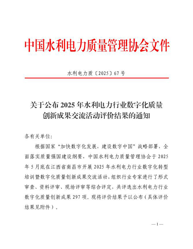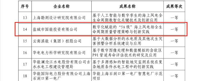 近日,中國水利電力質(zhì)量管理協(xié)會發(fā)布《關(guān)于公布2025年水利電力行業(yè)數(shù)字化質(zhì)量創(chuàng)新成果交流活動評價結(jié)果的通知》,集團能源板塊國能公司《數(shù)字化賦能的“5A級”海上風電場全生命周期質(zhì)量管理策略與創(chuàng)新實踐》、國豐公司《海上風電場海陸通訊數(shù)字化管理體系建設》兩項創(chuàng)新成果脫穎而出,分別榮獲一等獎與二等獎。