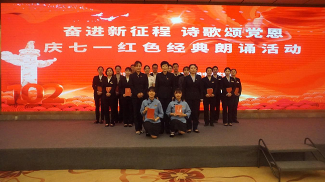 為慶祝中國(guó)共產(chǎn)黨成立102周年,弘揚(yáng)偉大建黨精神,抒發(fā)愛黨愛國(guó)情懷,6月29日下午,鹽城國(guó)投大酒店黨支部聯(lián)合國(guó)投中科黨支部以“奮進(jìn)新征程 詩(shī)歌頌黨恩”為主題,開展了慶“七一”紅色經(jīng)典誦讀活動(dòng)。