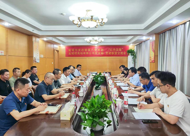 8月22日下午,鹽城招商場黨總支和市發(fā)改委機關(guān)第六黨支部開展了“紅色溫馨”結(jié)對共建活動。市發(fā)改委機關(guān)黨委二級主任科員張錦鋒,市發(fā)改委基礎(chǔ)設(shè)施發(fā)展處負責人、機關(guān)六支部黨員代表,鹽城招商場黨員代表參加活動。