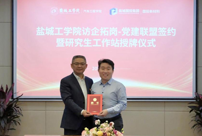 雙方還簽訂了黨建聯盟協(xié)議,王資生為國投新材料公司進行研究生工作站授牌,國投新材料公司為鹽城工學院汽車工程學院副院長鄭竹安頒發(fā)“科技副總”聘書。雙方一致表示,要以此次合作為契機,搭建學習交流平臺,在產學研深度融合、學院學生就業(yè)上進一步加強溝通對接、深化戰(zhàn)略合作,攜手譜寫校企合作新篇章。